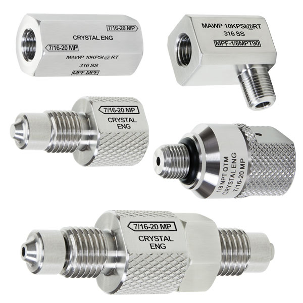 Crystal CPF Fittings sind laser-beschriftet (Gewinde und max. Druck)