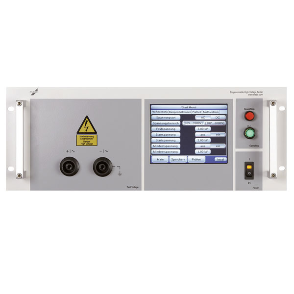 Das mehrfarbige Touch-Panel ermöglicht eine ergonomische Bedienung der Prüfgeräte, die standardmäßig mit serieller RS232C-Schnittstelle ausgerüstet sind (wahlweise mit Ethernet bzw. USB). Alle Geräte sind auch ohne Bedienmodul erhältlich, z.B. für den Einsatz in automatischen Systemen.