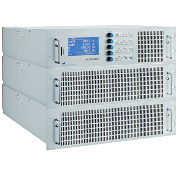 Die elektonisch regelbare AC-Quelle EAC-3SP verfügen am Eingang über ein Schaltnetzteil und auf der Sekundärseite über eine lineare Endstufe. Die Geräte werden verwendet, um Spannungen, Ströme, Frequenzen und Kurvenformen unabhängig vom Netz, 3-phasig nachzubilden.