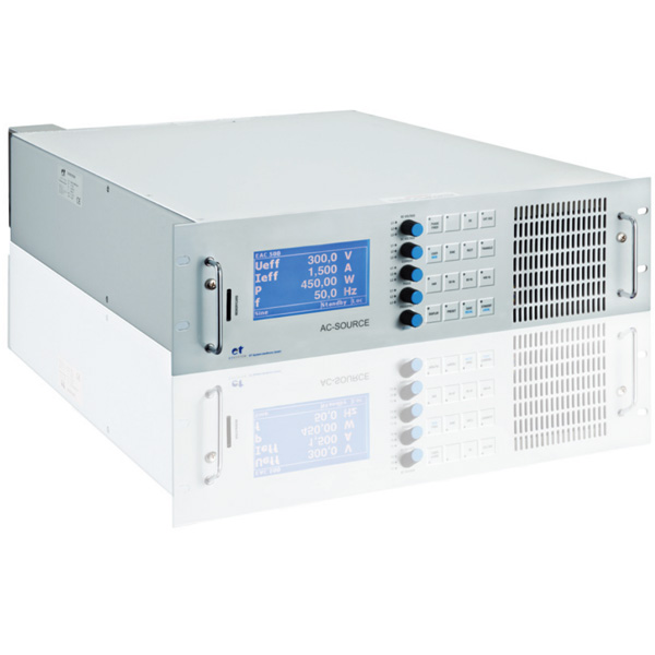 Die elektronisch regelbare AC–Quelle EAC–SP verfügen am Eingang über ein Schaltnetzteil und auf der Sekundärseite über eine Lineare Endstufe. Die Geräte werden verwendet um Spannungen, Ströme, Frequenzen und Kurvenformen unabhängig vom Netz, 1–phasig nachzubilden.