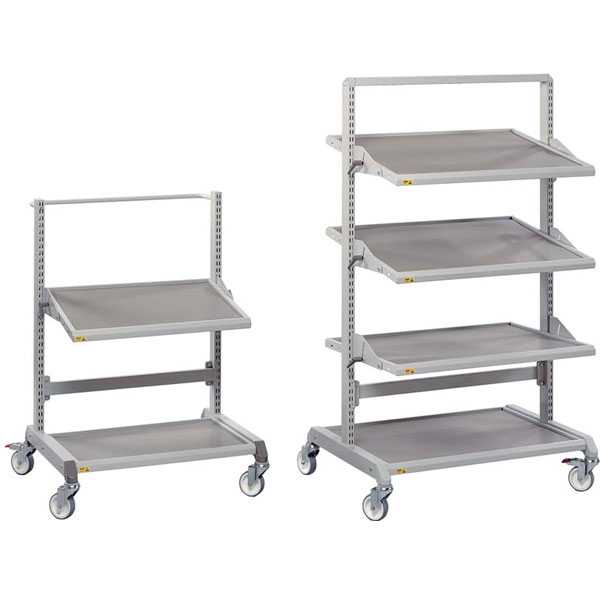 Ein robuster und stabiler Wagen, der hohen Belastungen standhält und sich mühelos bewegen lässt. Der Multiwagen lässt sich ideal als ergonomische Arbeitsstation, zum Beispiel für Messgeräte, nutzen oder als mobile Hygienestation, beispielsweise zur Desinfektion medizinischer Umgebungen.