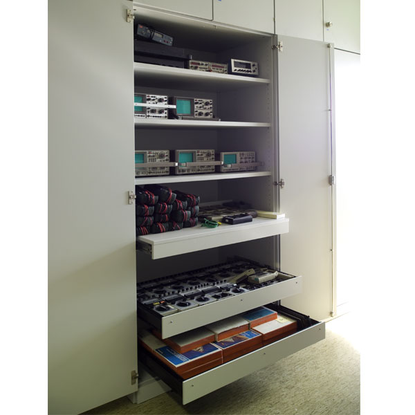 Fachträger und Fachböden Die verschiedenen Schränke werden mit Fachböden untergliedert. Fachbodenträger sind in Ganzmetall- und Holzausführung erhältlich; so können bedarfsgerecht unterschiedliche Traglasten realisiert werden. Die Fachböden können in fast beliebigem Höhenabstand übereinander eingesetzt werden (Abstandsraster: 32 mm). Durchdachte Orga-Elemente Das außerordentlich vielseitige Spektrum an Orga-Elementen (Schubladen- und Schrankteilern, Nutenmatten, etc.) unterstützt eine sehr differenzierte, übersichtliche Ordnung in allen Aufbewahrungsbehältern. In die Schubladen können beispielsweise Fachteiler oder ganze Aufbewahrungsschalen eingelegt werden. Somit herrscht in der Schublade auch dann noch Ordnung, selbst wenn diese schwungvoll geschlossen wird. Zugleich wird mit den Struktur gebenden Orga-Elementen eine optimale Nutzung des Stauraumes erreicht.