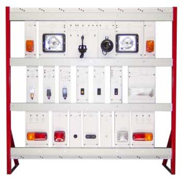 Gerätebeschreibung:Die Experimentierbauplatten werden aus Dreischicht-Melaminharzplatten gefertigt und sind mit entsprechender Schaltsymbolik graviert. Die Platten haben eine Bauhöhe DINA4 und eine Plattendicke von 6 mm. Stecker- und Kabelverbindungen erfolgen an isolierten 4 mm Buchsen. Die interne Verdrahtung auf den Plattenrückseiten sind durch Kunststoffhauben abgedeckt.Der Experimentierstand dient zur Aufnahme von Experimentierbaublatten und somit zum funktionellen Aufbau von KFZ-Elektrik- und KFZElektronik-Systemen. Das Rastermaß des dreizeiligen Experimentierrahmens erlaubt die Aufnahme von Experimentierbauplatten mit einer Dicke bis zu 6 mm und einem vorgegebenen Höhenmaß von DIN A4. Das Höhenmaß ist variabel einstellbar und somit auch für andere Bauplatten-Systemhöhen verwendbar. Die obere Stromleiste für Klemmen 30/15 und Relaisschaltungen kann in Verbindung mit der unteren Masseleiste dazu genutzt werden Schaltungen im Stromlaufplanaufzubauen.