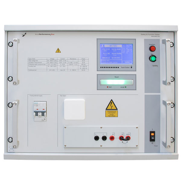 Das G8 Kombiprüfgerät vereint zuverlässige Schutzleitermessung, Isolationswiderstandsmessung, Durchgangs- und Funktionsprüfung mit Spannungsnormierung sowie eine Hochspannungsprüfung in einem Gerät. Letzteres ist je nach Gerätetyp für AC oder DC möglich. Eine Funktionsprüfung kann bis 16 A / 4000 VA durchgeführt werden.