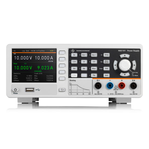 Die Gerätefamilie R&S®NGC100 besteht aus drei Modellen mit einer maximalen Gesamtleistung von bis zu 100 W und einem durchgehend Spannungsbereich von 0 V bis 32 V. Das Ein-Kanal-Modell R&S®NGC101 liefert maximal 10 A, das Zwei-Kanal-Modell R&S®NGC102 maximal 5 A und das Drei-Kanal-Modell R&S®NGC103 maximal 3A pro Kanal. Bei den Zwei- und Drei-Kanal-Modellen sind mehrere Ausgänge parallel oder in Serie schaltbar, um die Spannungen beziehungsweise Ströme zu erhöhen.