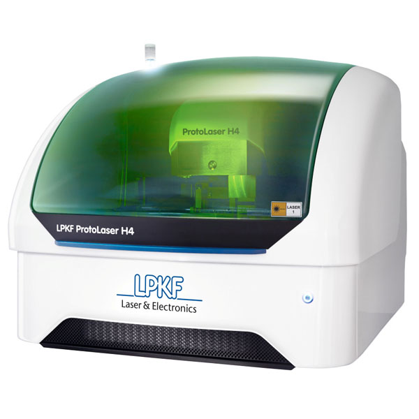 Das Bildverarbeitungssystem, sechs Werkzeugpositionen sowie zahlreiche softwaredefinierte Laserwerkzeuge und eine umfangreiche Bibliothek vordefinierter Materialien ermöglichen den Betrieb des LPKF ProtoLaser H4 nahezu ohne Benutzereingriff.