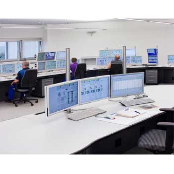 Der Prozessleitplatz für eine höhenreduzierte Aufstellung der Monitore.