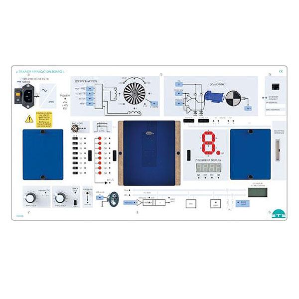 Das „μ-Trainer Application Board“ ist das Basismodul für das Mikrocomputer-Trainingssystem „μ-Trainer“ und ermöglicht den Einsatz folgender µ-Controller:
