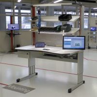 In einer Musterfabrik zeigt ELABO die Möglichkeiten vernetzter industrieller Produktion auf. Neben der Funktionsweise von Arbeitsplatz-Verbundsystemen kann auch die Umsetzung von Sicherheitsmaßnahmen nachvollzogen werden.