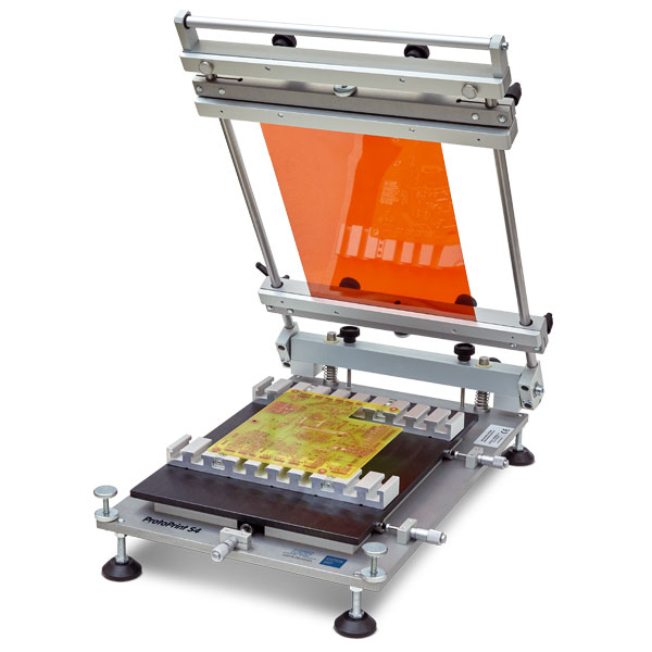 Der ProtoPrint S4 bietet eine hohe Positioniergenauigkeit, einen SMD-Fine-Pitch-Druck, eine einstellbare Druckhöhe sowie ein einfaches Einspannen der Schablonenrahmen. Die plane Grundplatte bietet genug Platz für magnetischen Leiterplattenhalter. Über drei Mikrometerschrauben für X-, Y-, und den Verdreh-Winkel an der Platte erfolgt die Feinpositionierung der Leiterplatte.