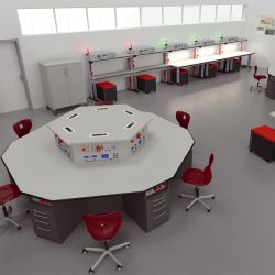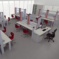Die Primus One Labortische erfüllen die höchsten Anforderungen an eine moderne Ausbildung und bieten genug Platz für die Einbindung relevanter Elektronik und die Aufnahme von Didaktik-Boards.