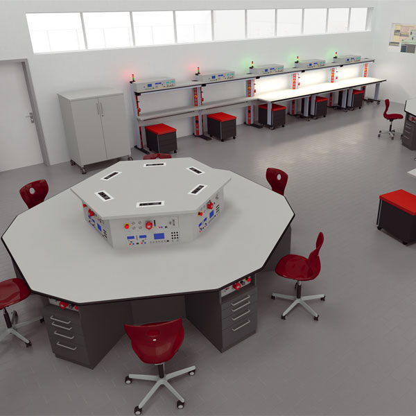 Eine effiziente Raumgestaltung in der Lehrwerkstatt ist gerade bei geringem Platzbedarf oder sich ändernden Lernsituationen sinnvoll.