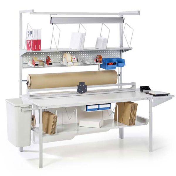 - Packtische, Kommissioniertische, Arbeitsstationen für Umverpackung und Kennzeichnung, Rasterrohr-Packtische