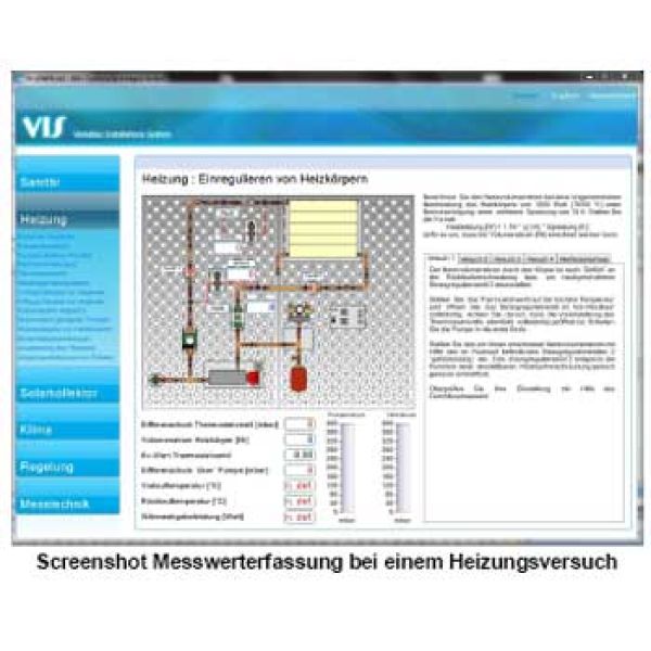 Es können Messwerte erfasst, oder Versuchsabläufe simuliert werden.Video- und Animationssequenzen lassen sich direkt abspielen und stehen im Unterricht auf ´Tastendruck´ zur Verfügung.Mit AndiWIN.net lassen sich sehr leicht eigene Projekte erstellen.Messen Sie Drücke, Durchflussmengen, Temperaturen, usw. oder bauen Sie Regelkreise auf, die von AndiWIN.net gesteuert werden.Zu allen VIS-Standardversuchen gehören umfangreiche Messoberflächen mit Textinformationen, Bildern und Animationen, die das Hintergrundwissen zum jeweiligen Versuch vermitteln.Die Screenshots zeigen als Beispiel die Erfassung der Wärmeabgabe eines Heizkörpers und die Messwerterfassung in einem Klimasystem mit einem h-x-Diagramm.Zusätzlich können interaktive Kursverläufe oder Kenntnisprüfungen erstellt werden. Ein Arbeitsblatteditor erlaubt das Erstellen und Ausdrucken von Schülerarbeitsblättern.