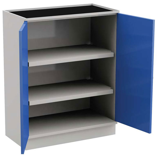 Praktisch! Die Oberseite der 100 cm hohen Schränke sind mit einer Rollschutzleiste und einer Gummimatte ausgestattet, die als zusätzliche Arbeitsfläche dient